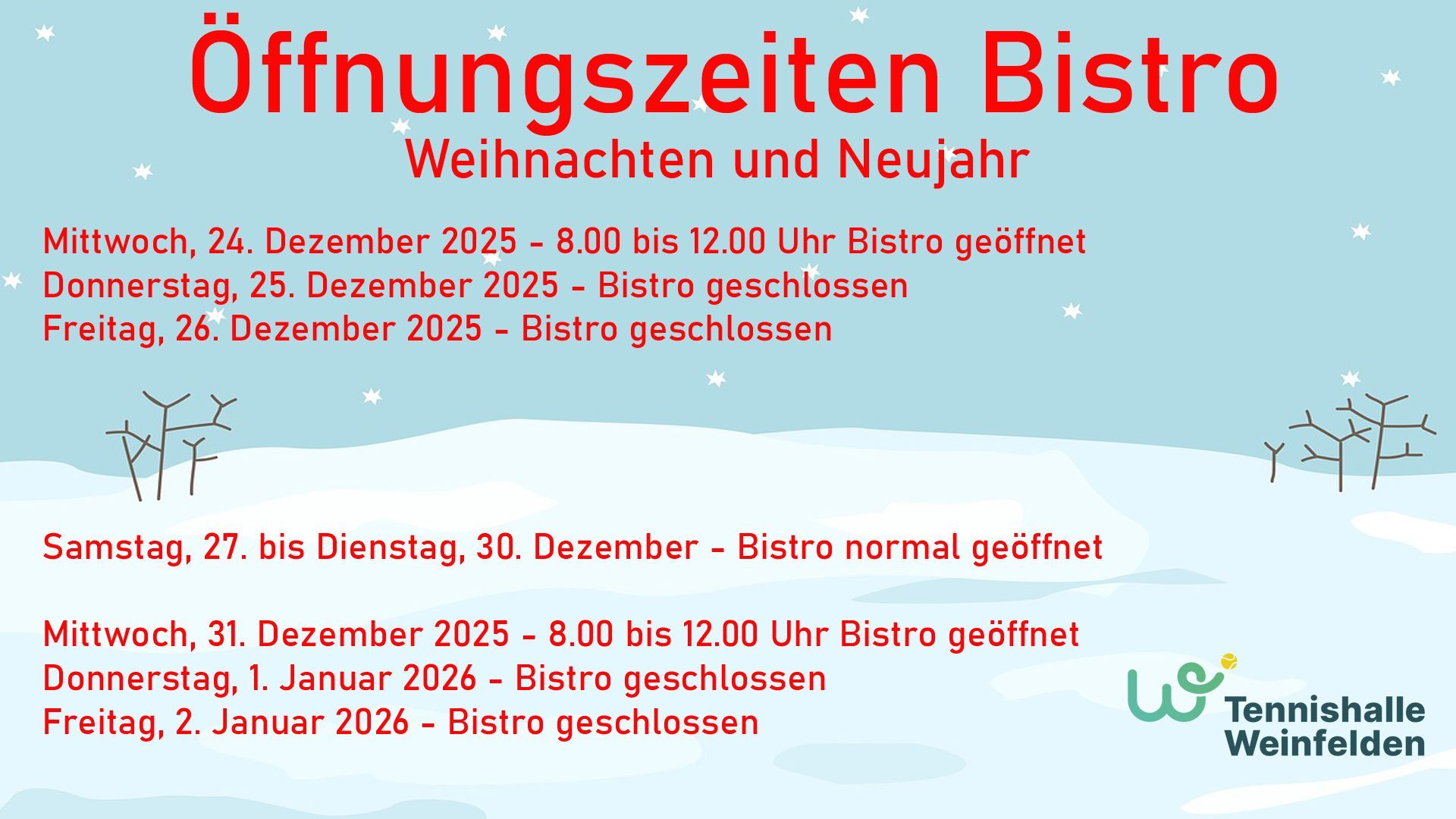 Öffnungszeiten unseres Bistros (Personal in der Halle)